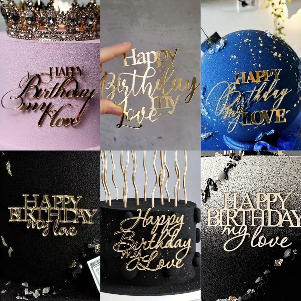 Mi amor Cake Topper Feliz Cumpleaños:Topper de acrílico de la torta del oro