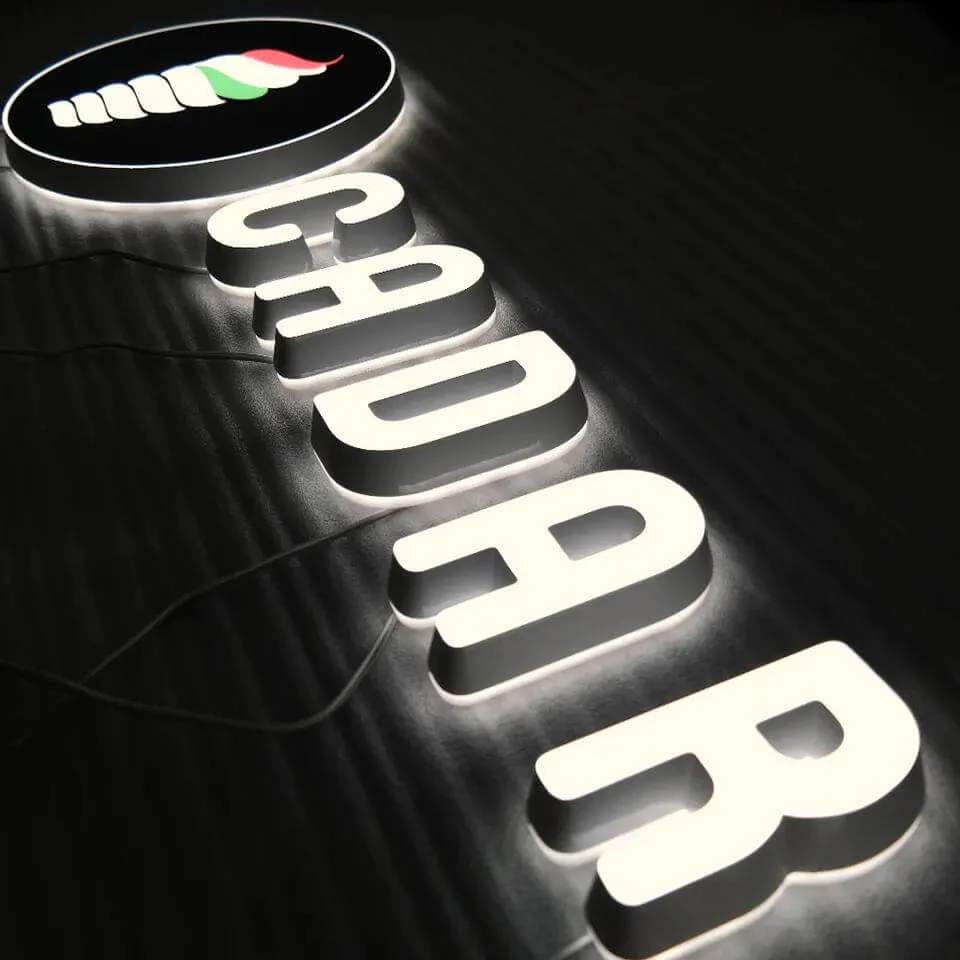 Letreros de restaurante iluminados con LED acrílico, letras de canal iluminadas en la parte delantera y trasera, Material de vidrio para publicidad comercial
