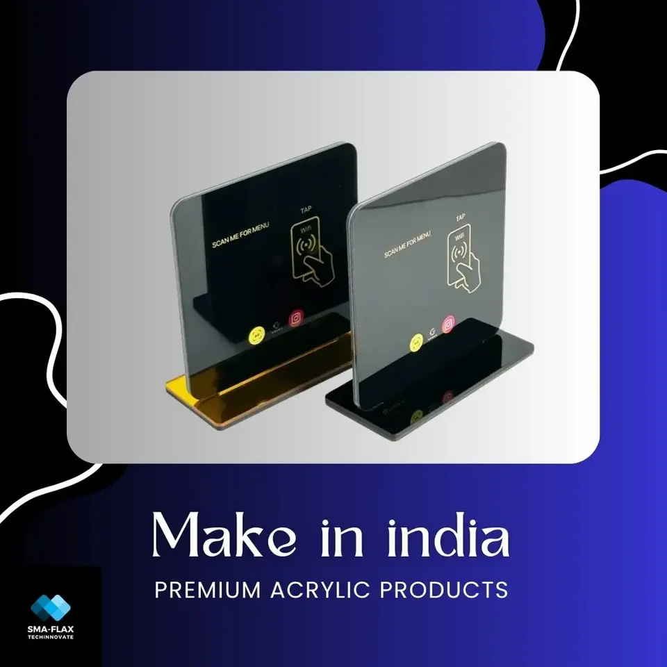 Expositor de Acrílico para Menú de Mesa con NFC para Reseñas de Google, Plegable, 6 mm