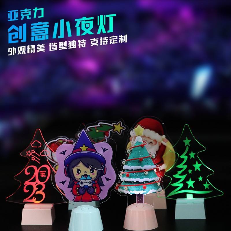 Luz nocturna acrílica con diseño de dibujos animados en 3D, LED colorido, control táctil, alimentada por batería, decoración para mesita de noche, regalo navideño
