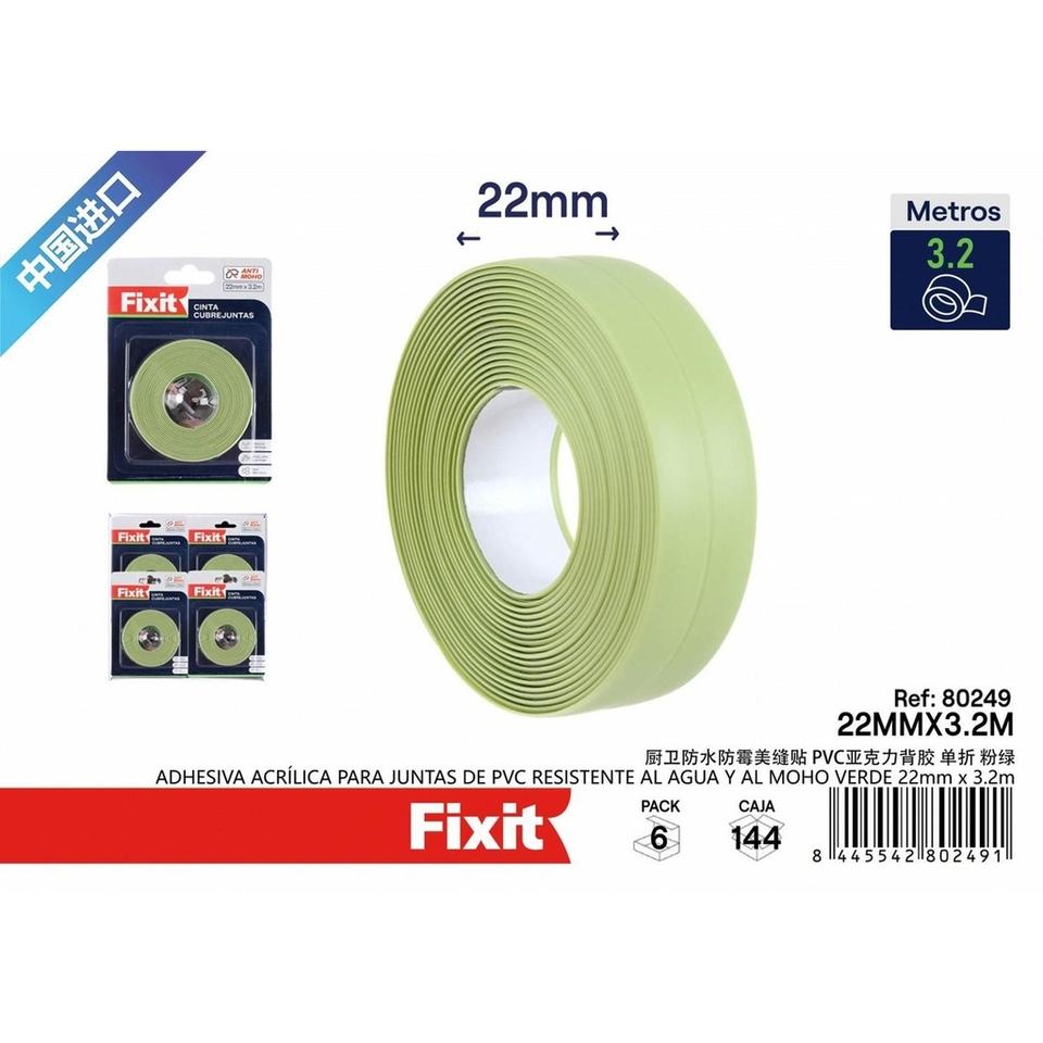 Cinta acrílica de PVC para juntas, impermeable y resistente al moho, verde, 22mm X 3,2 m, para baño y cocina