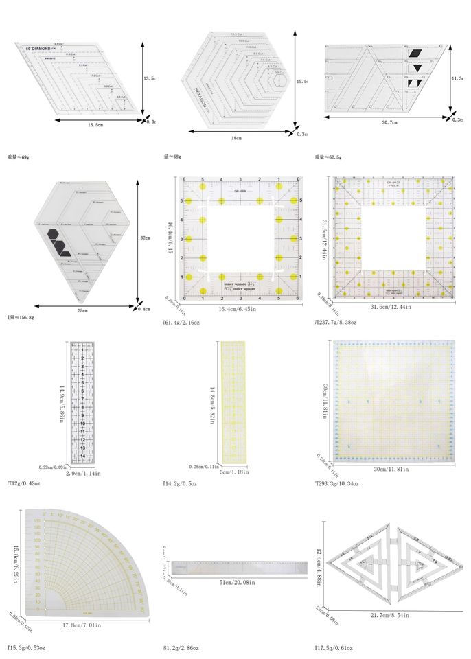 Regla de retales acrílicos, herramientas de corte de tela, ropa, regla de pie, regla de resistencia de costura, cinta métrica de densidad giratoria