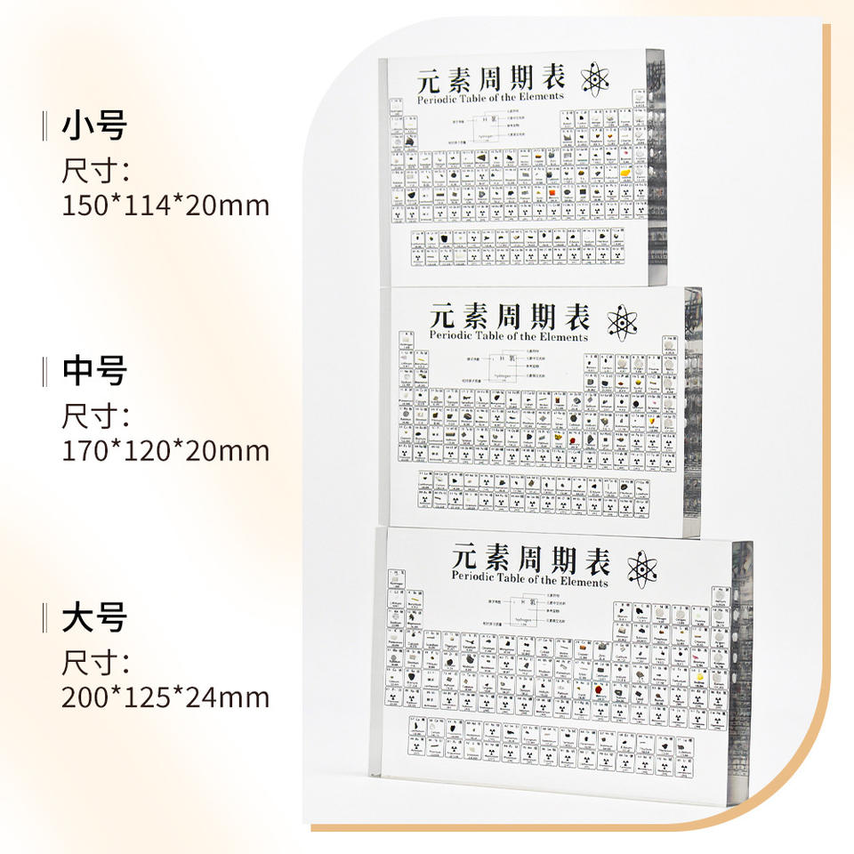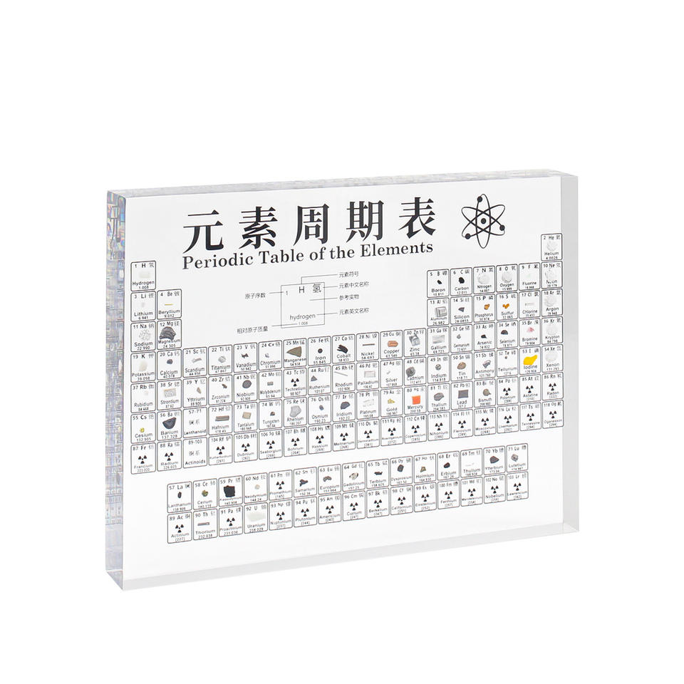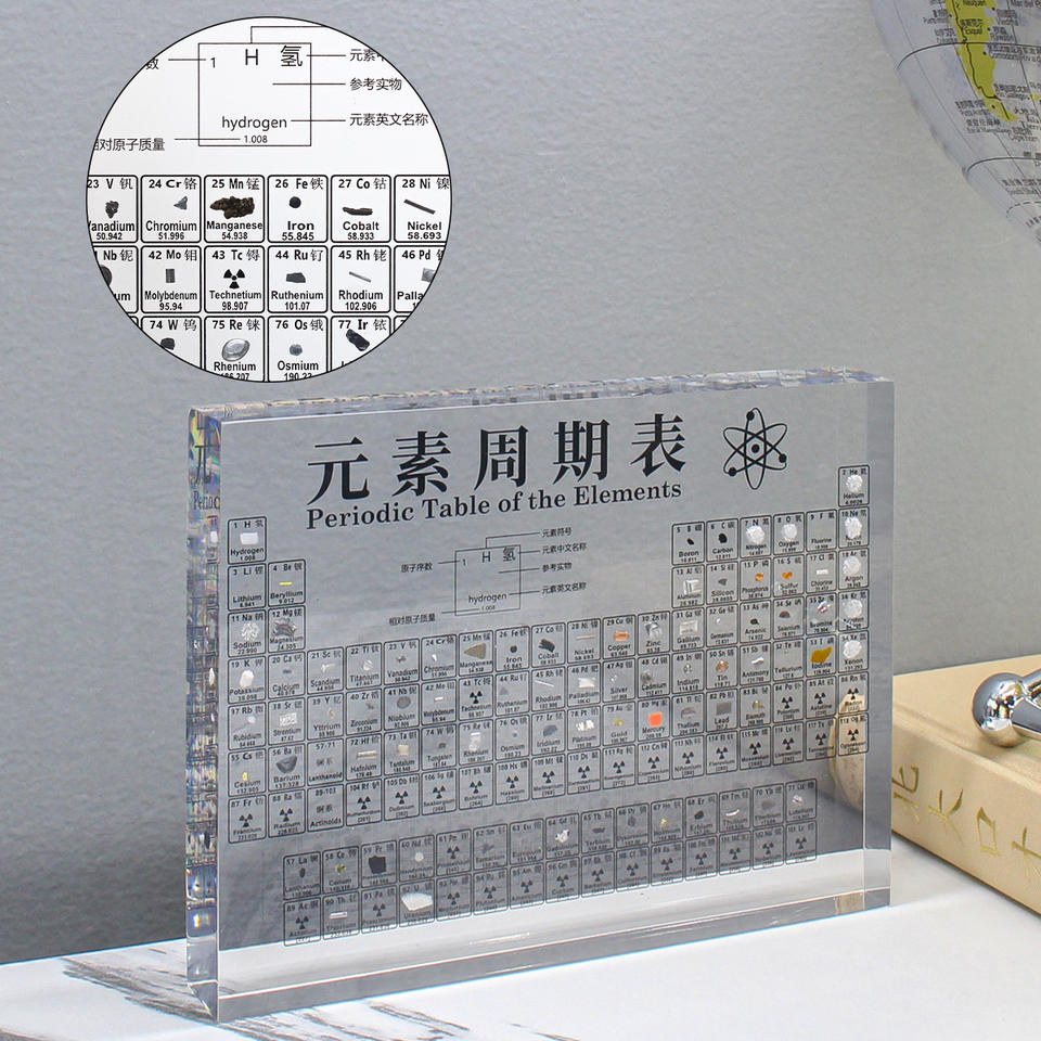 Tabla periódica de los elementos de acrílico, modelo de enseñanza en chino e inglés, muestra real, adorno de escritorio para educación científica