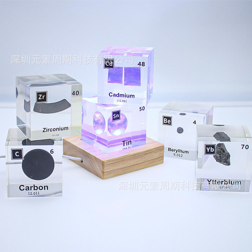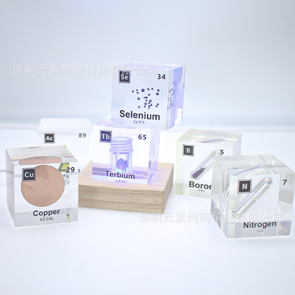 Cubo de acrílico con muestras de la tabla periódica de los elementos químicos para la enseñanza escolar, regalos educativos y decoraciones.