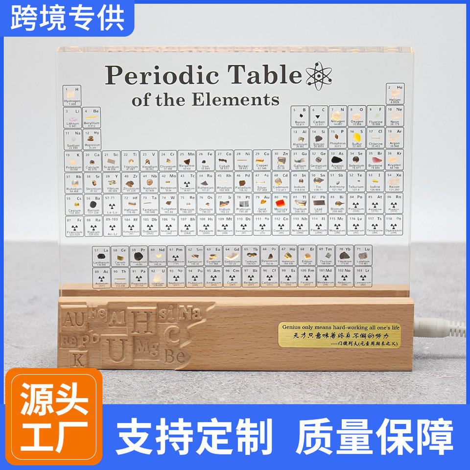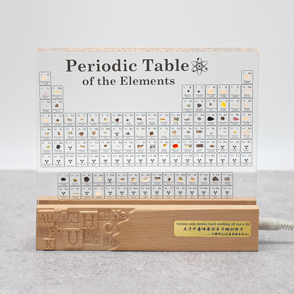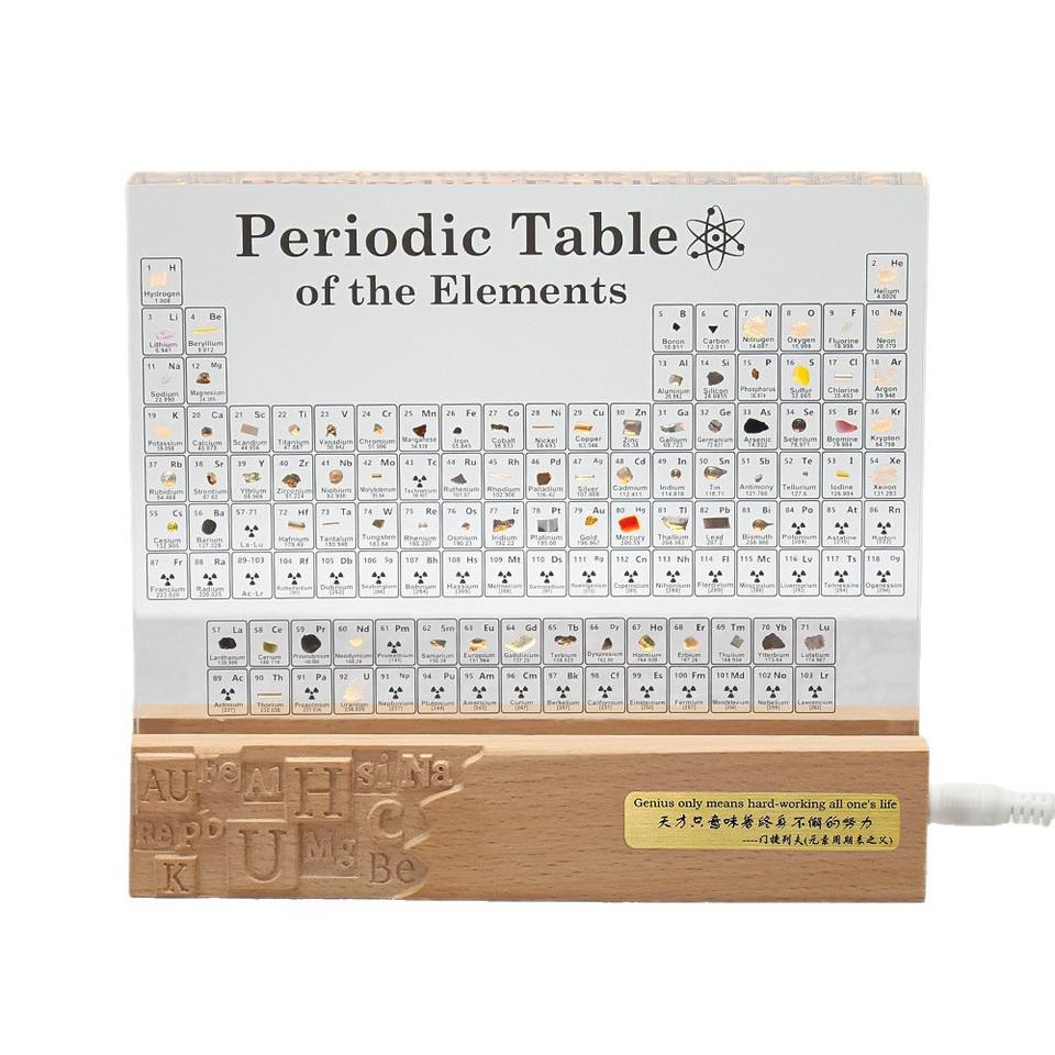 Tabla Periódica de Acrílico con 83 Elementos Inseridos, Base de Madera, Iluminación LED, Decoración Educativa, Regalo