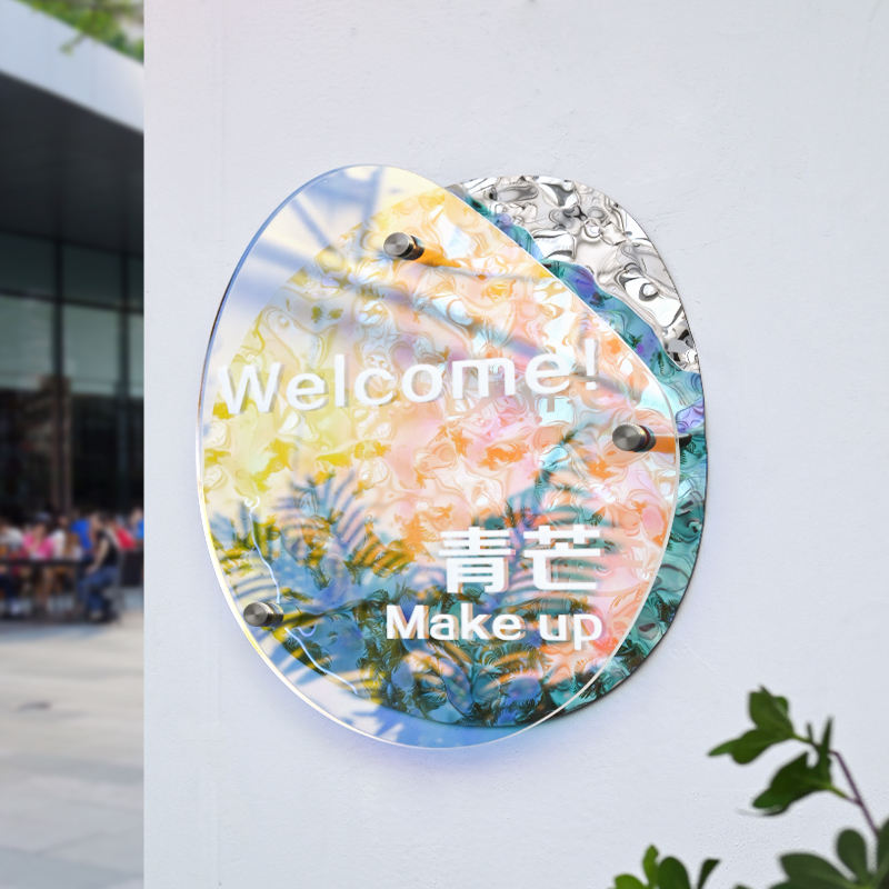 Hojas acrílicas para corte por láser, diseño creativo de vallas publicitarias acrílicas irregulares de doble capa y señales de entrada de la tienda,