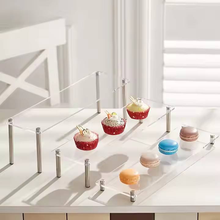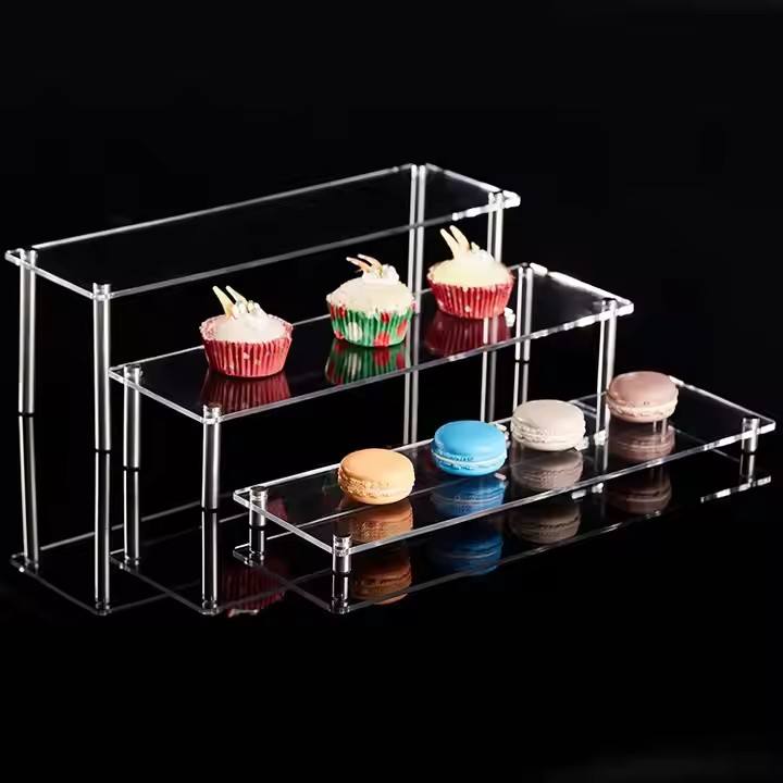 Exhibidor de Acrílico para Pasteles y Aperitivos, Exhibidor de Acrílico de 3 Niveles, Exhibidores de Acrílico Escalonados