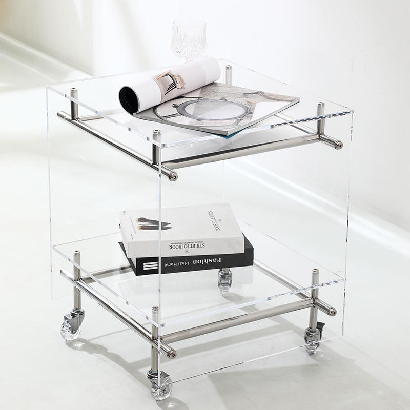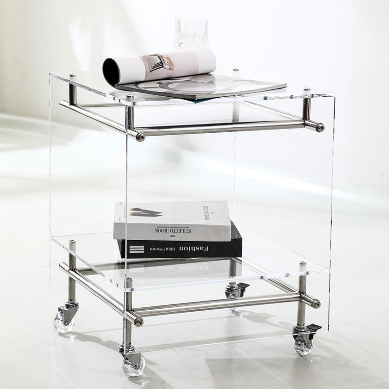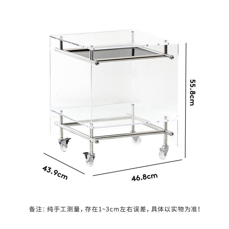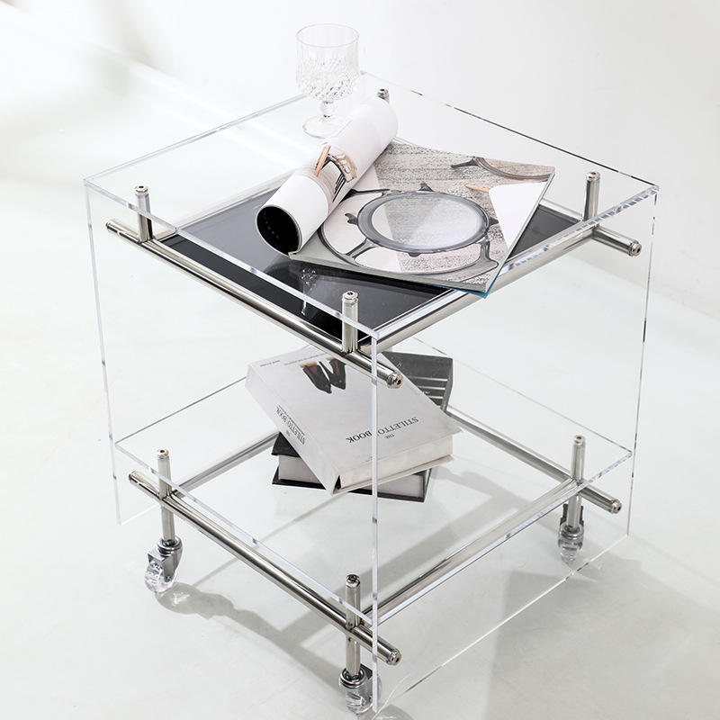 Carrito de almacenamiento acrílico con ruedas, estante de varios niveles, mesa auxiliar transparente para sala de estar, dormitorio, diseño moderno