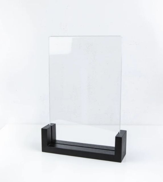 Soporte de menú de mesa de acrílico con base de madera o acrílico, soporte de mesa de plástico con grabado de logotipo, soporte de señal personalizado
