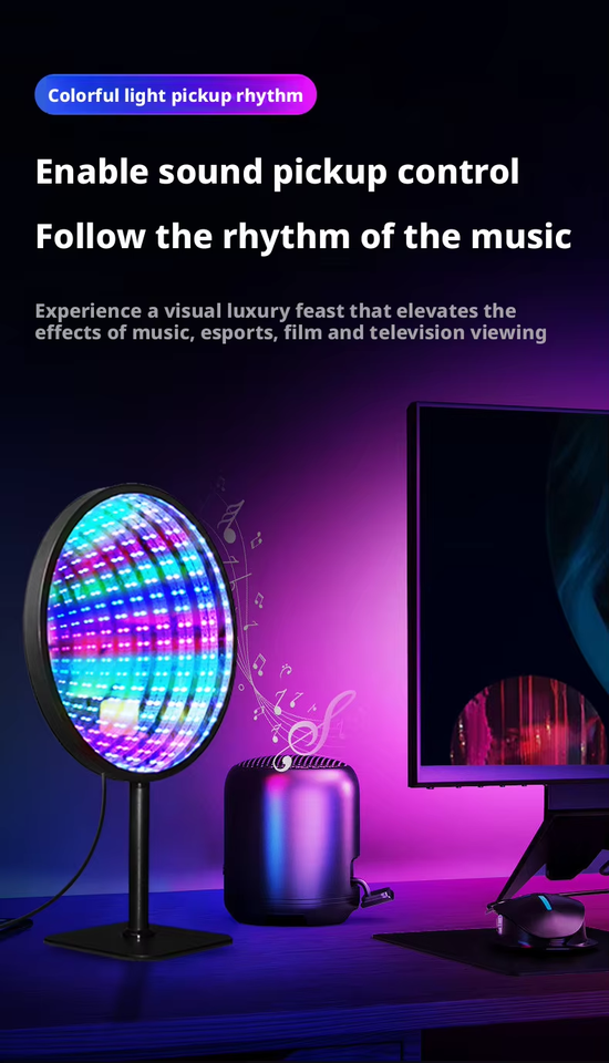 Lámpara de Ambiente Inteligente con Túnel del Tiempo 3D, LED RGB Acrílico, Alimentación USB, Luz Ambiental