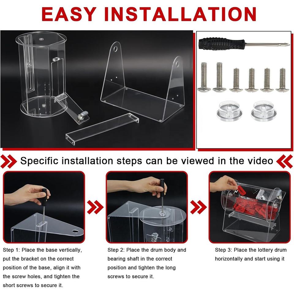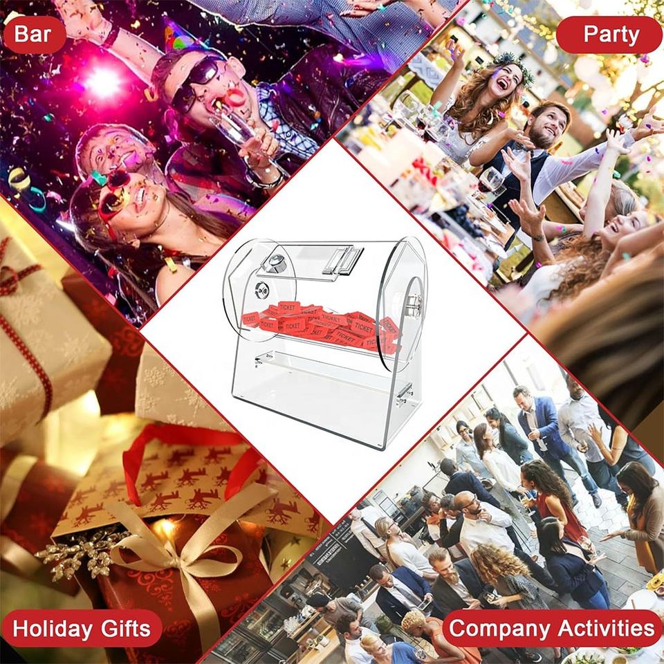 Caja giratoria de acrílico transparente para sorteo con 200 boletos, capacidad para hasta 2000 boletos, portátil