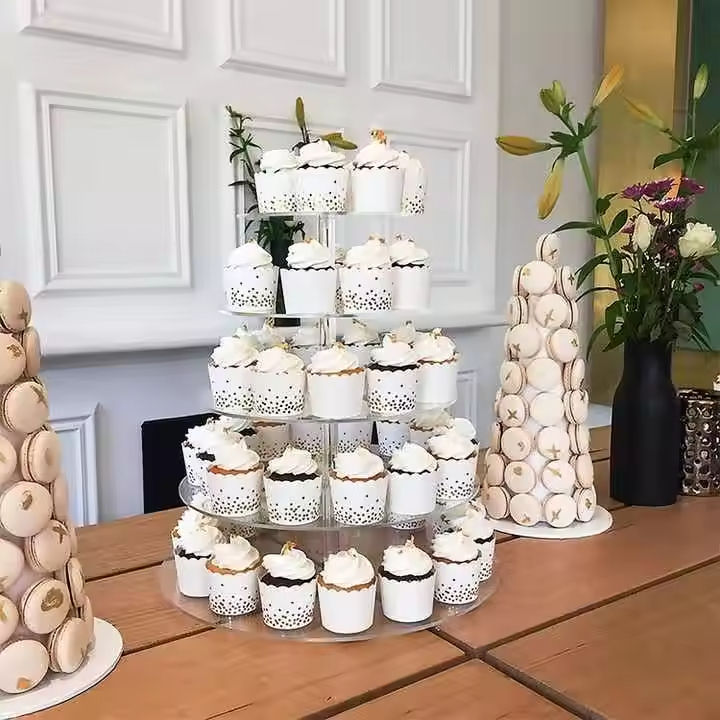Base Redonda Transparente de Acrílico para Exhibición de Postres, Estilo Art Deco, Ligera, Autoportante, Fácil de Montar, para Decoración del Hogar