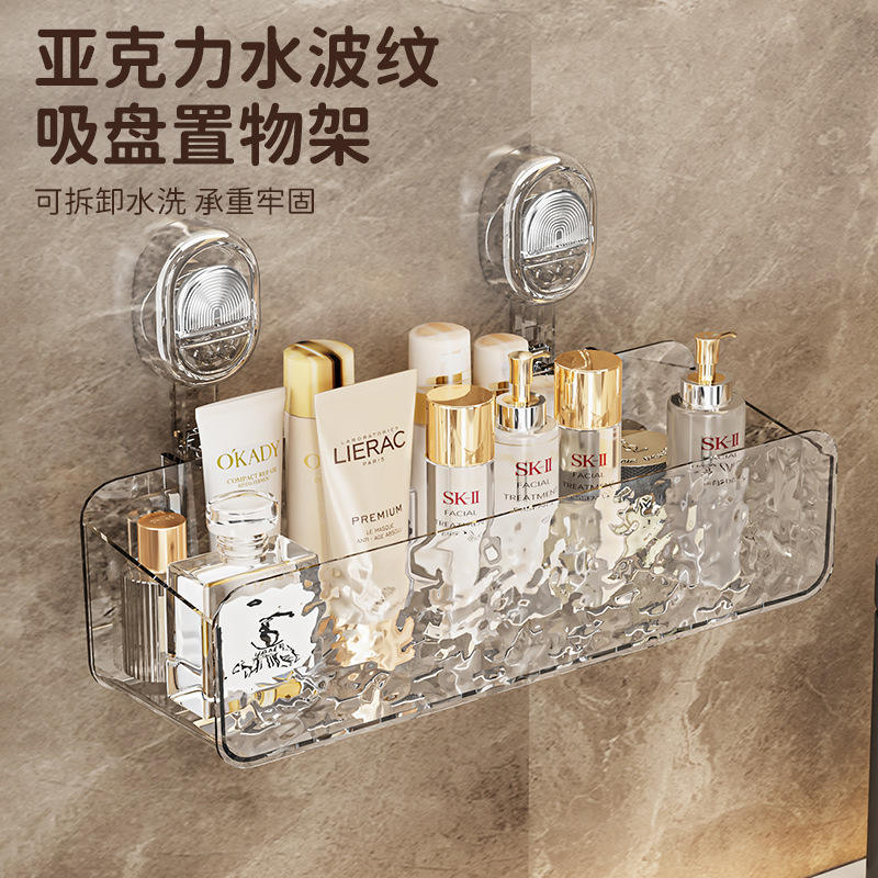 Acrylic Water Ripple Suction Shelf 50X30Cm Rectangle Bathroom Storage For Toiletries And Cosmetics