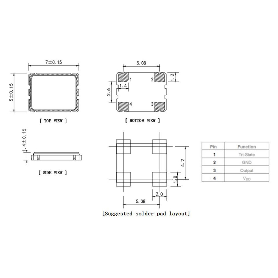 Oscilador de cristal activo 5*7mm 7050 4 pines SMD 24.576MHz 1,8 V-3,3 V 10PPM CMOS de alta calidad