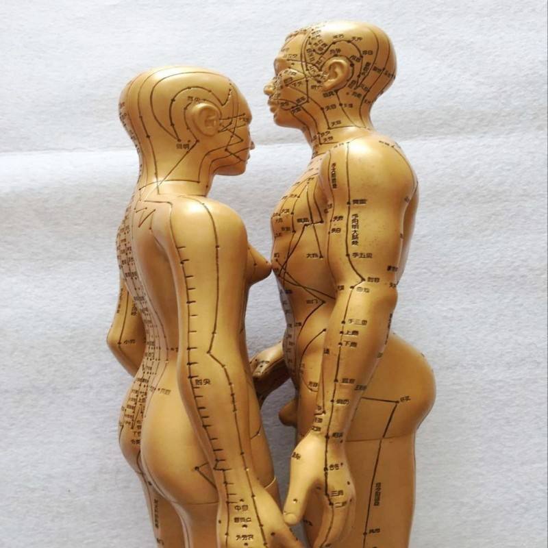 Modelo de meridianos de acupuntura masculino y femenino, color cobre, 50 cm, 48 cm, herramienta educativa médica