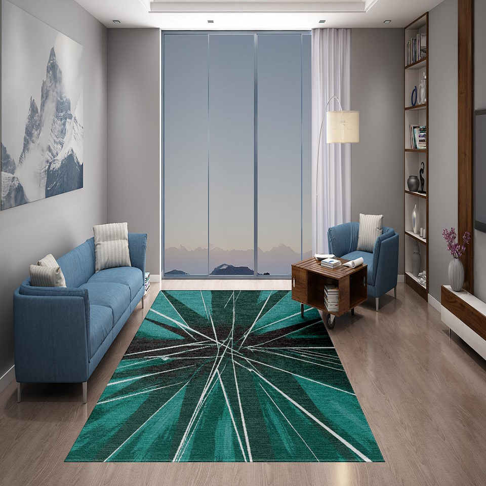 Alfombra de Lana de Estilo Persa Adam Rugs ARK103, Anudada a Mano, Pelo Medio, Resistente al Fuego, Ecológica, con Patrón Abstracto para Sala de Estar