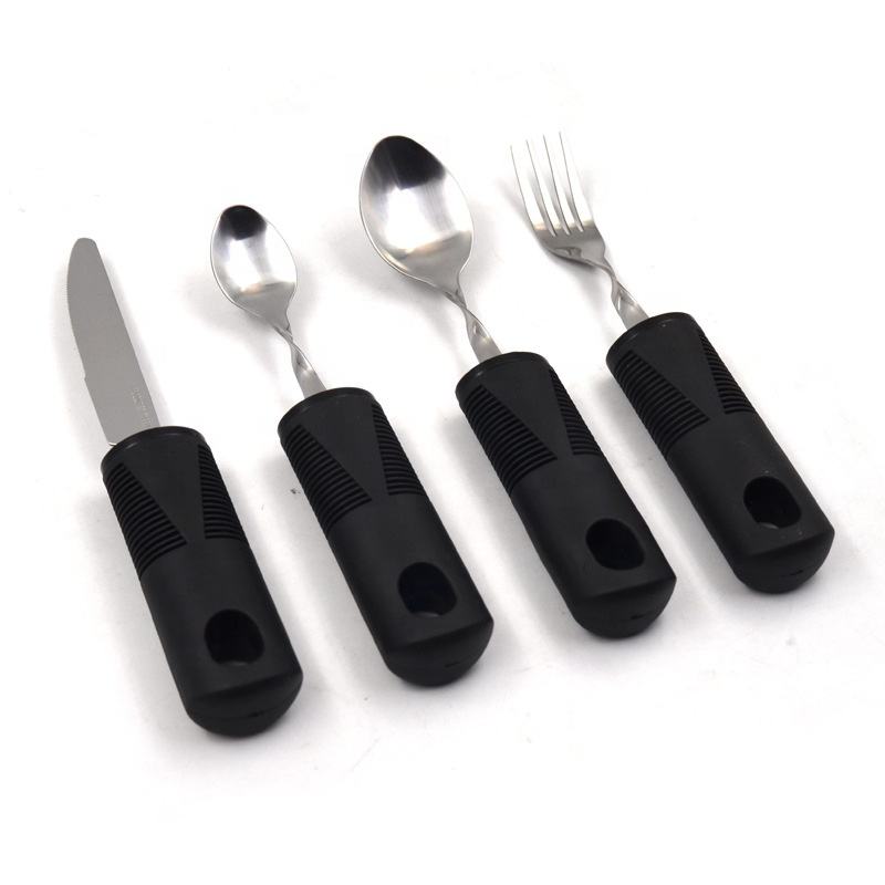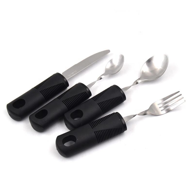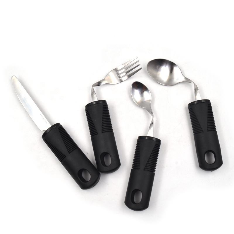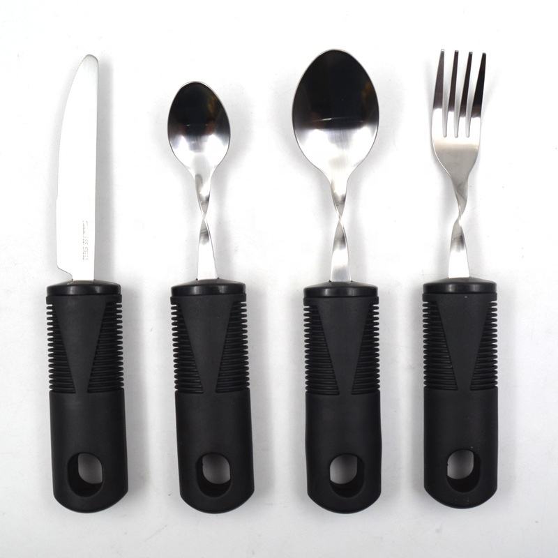 Utensilios adaptables de plata de fácil agarre, tenedor flexible incorporado, cuchara de té, cucharada y cuchillo para tréboles, adultos, ancianos, artritis