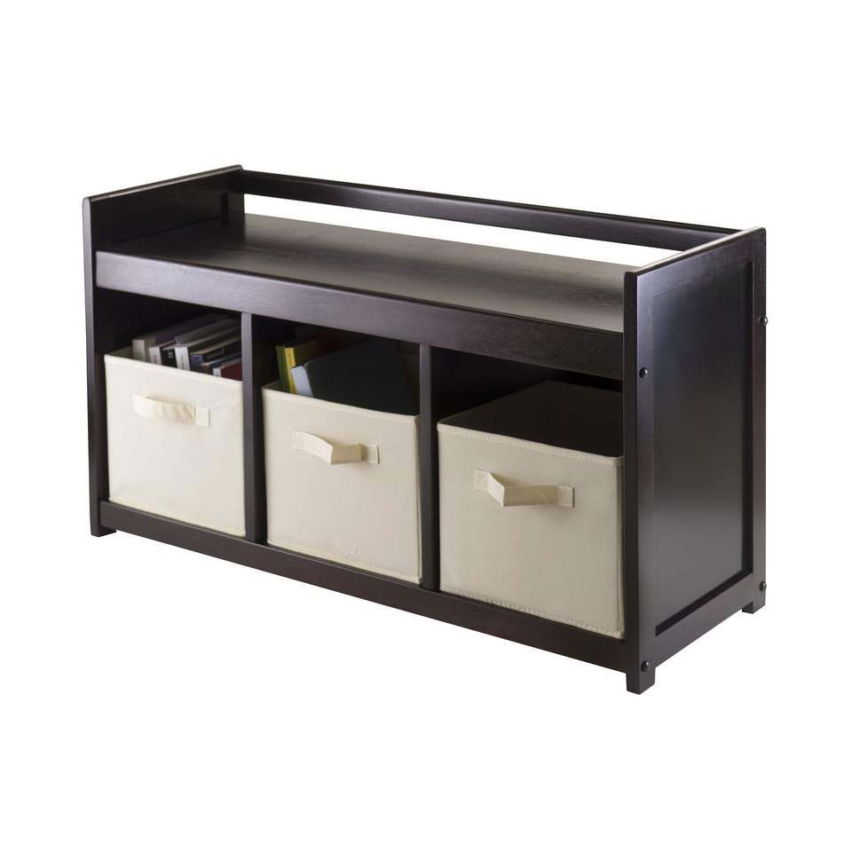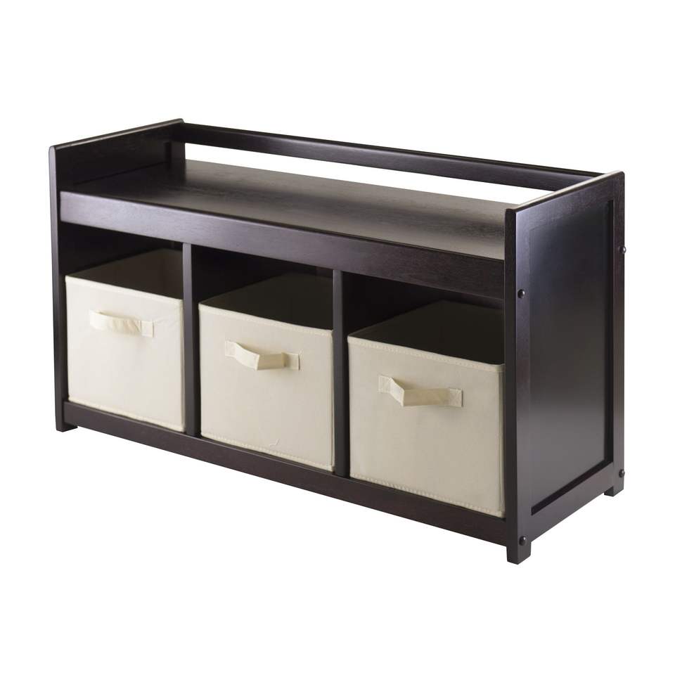 Banco de Almacenamiento Addison de 4 Piezas en Color Beige con 3 Cestas de Tela Plegables