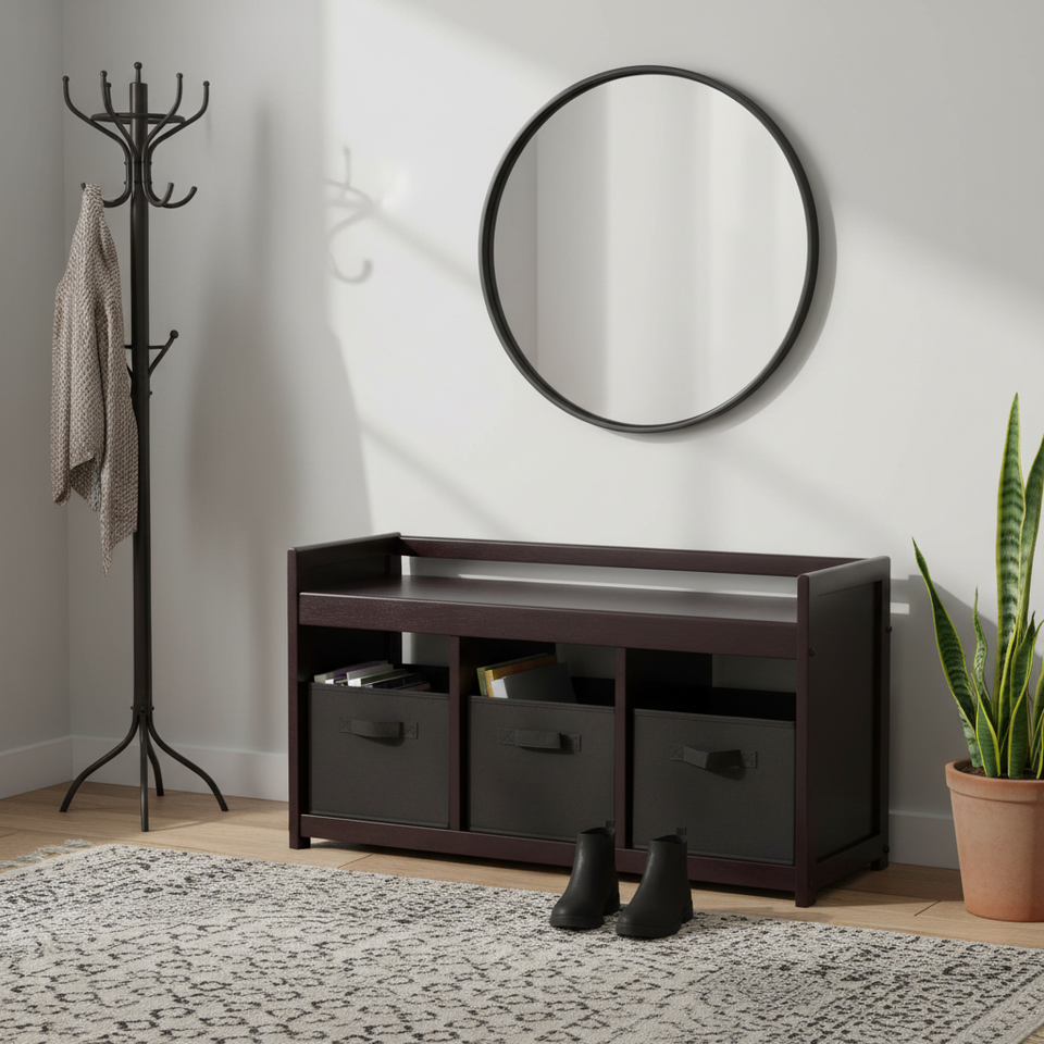 Banco de almacenamiento Addison de 4 piezas negro con 3 cestas de tela plegables