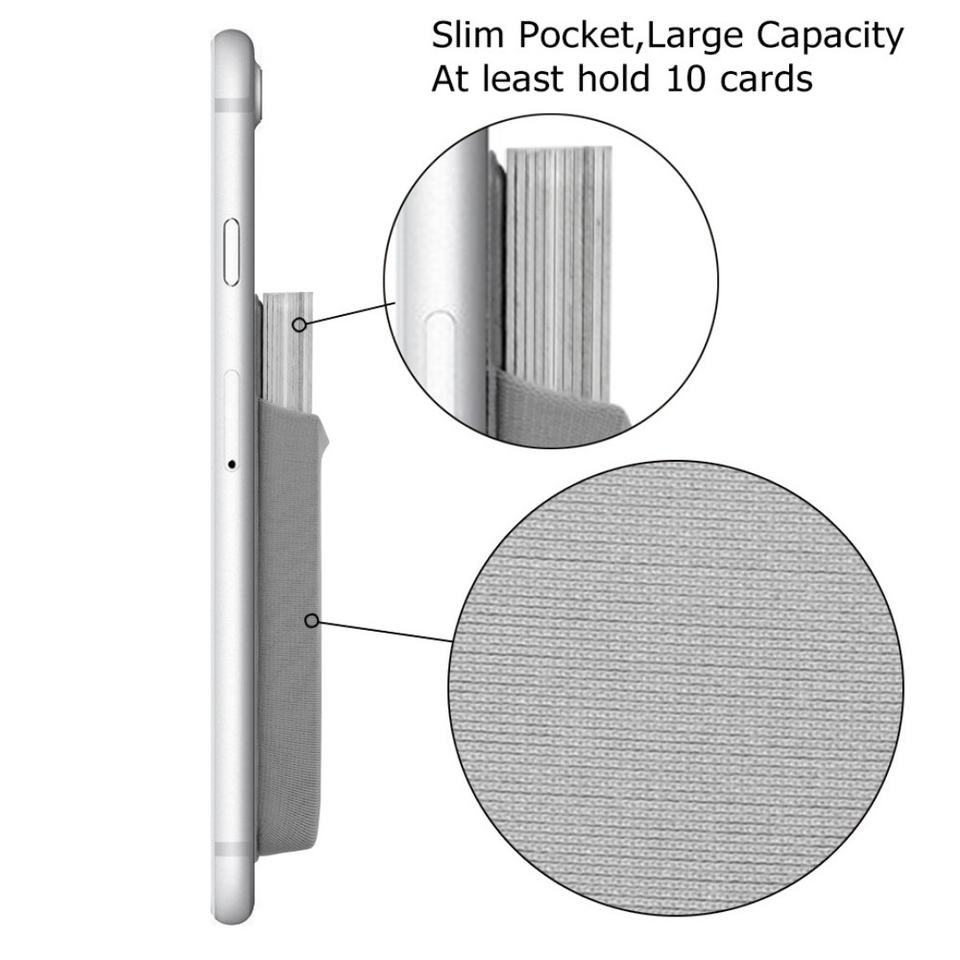 Adhesive Card Holder with RFID Blocking Sleeve Stick-On Stretchy Lycra Mobile Credit Card Holder for Cell Phone
