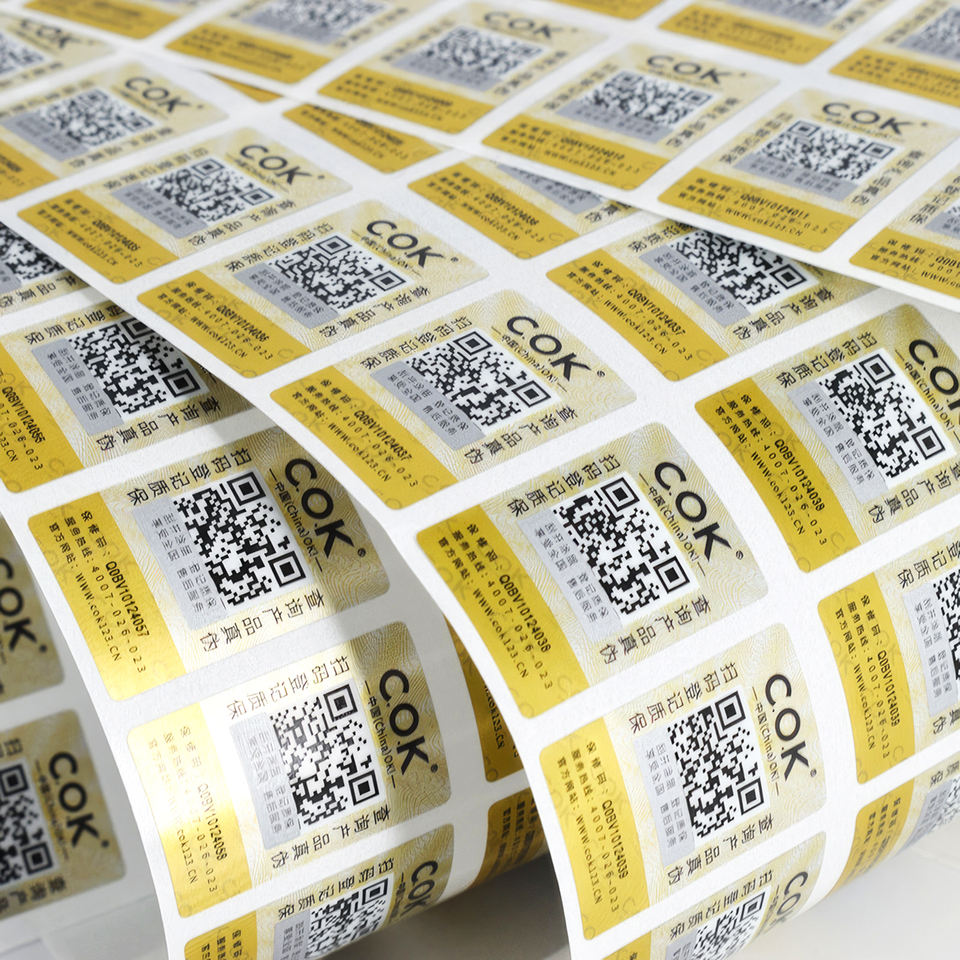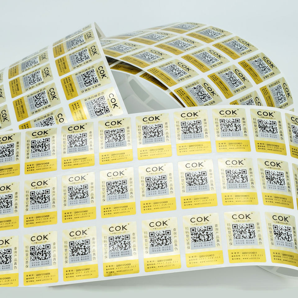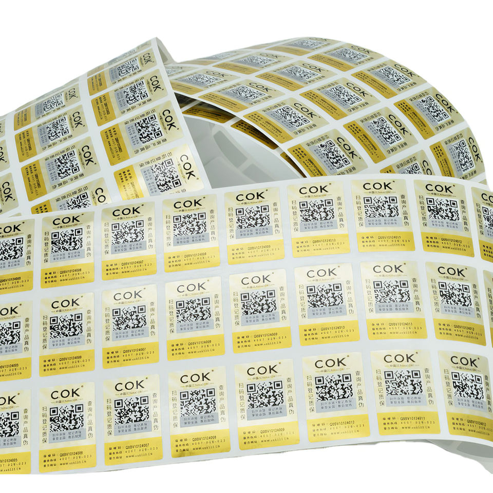 Adhesivo personalizado datos variables aleatorios código QR serializar secuencial código serie código de barras etiqueta antifalsificación
