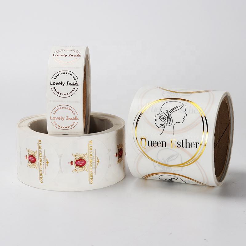 Adhesivo impermeable privado transparente hoja de oro logo pegatinas papel impresión personalizada etiqueta estampado en caliente claro oro hoja pegatina
