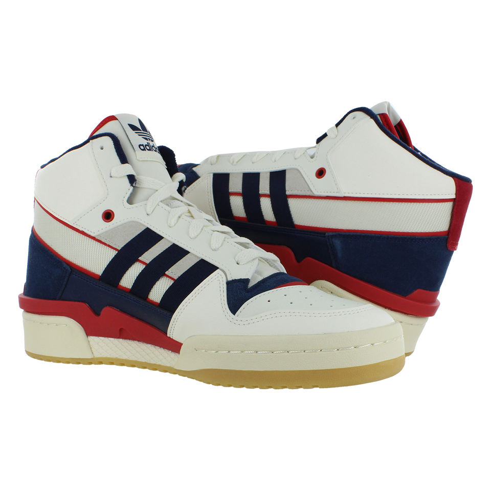 Zapatillas Adidas Forum Exhibit Mid 2 para Hombre en Blanco Hueso/Azul Marino Universitario/Rojo Escarlata con Función de Aumento de Altura para Caminar