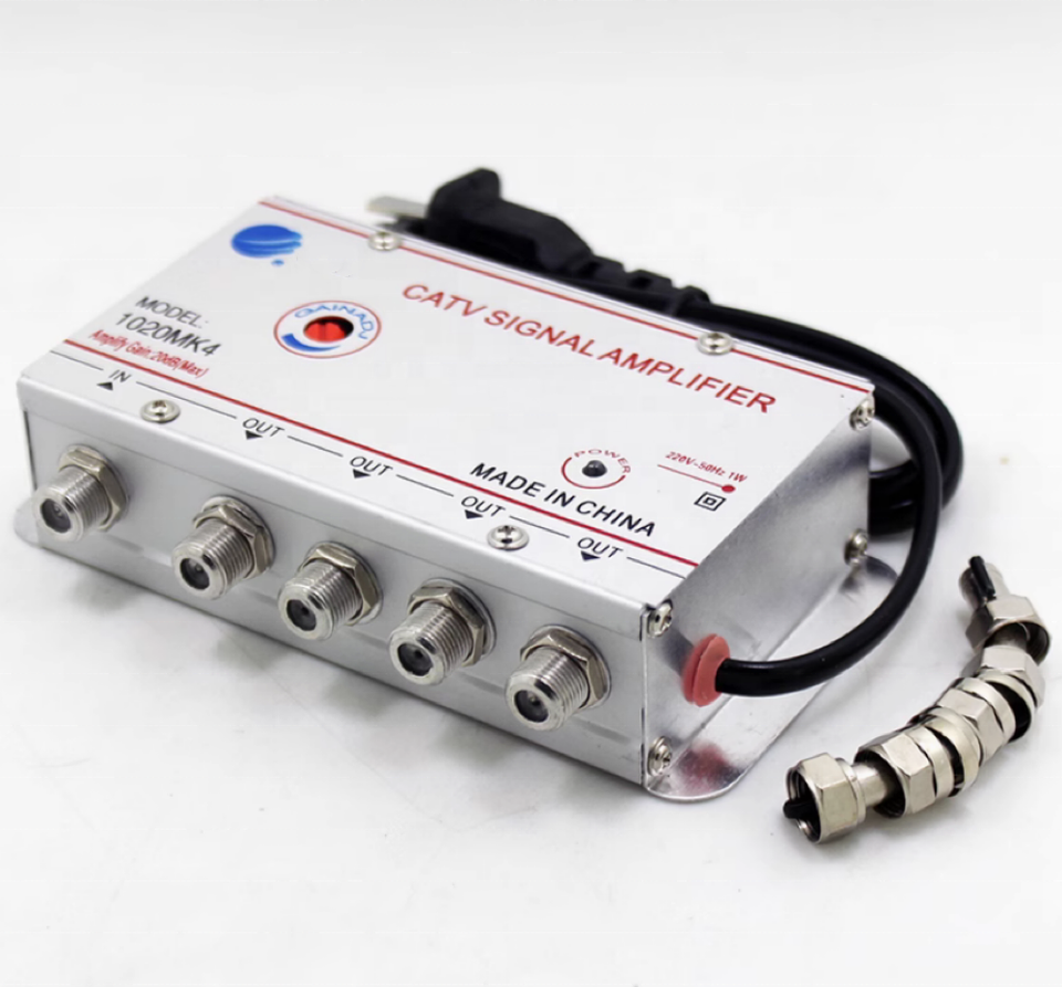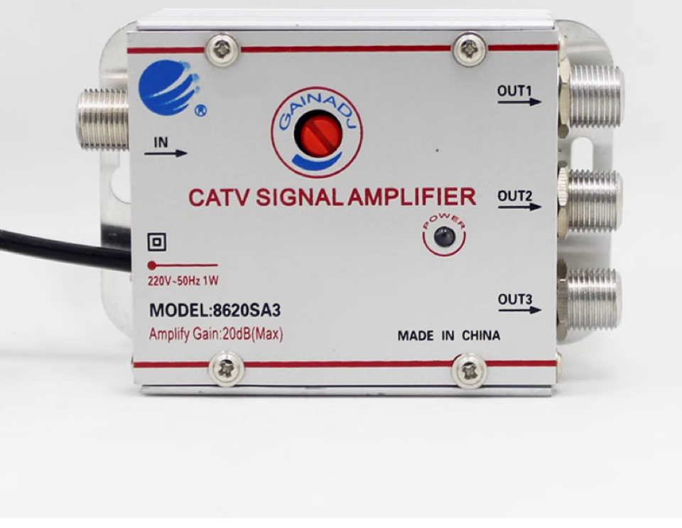 Divisor de Señal de TV por Cable CATV Ajustable de 1 Entrada y 3 Salidas, Amplificador de Señal de Antena de TV Digital de 20dB, 220v 50hz 1w