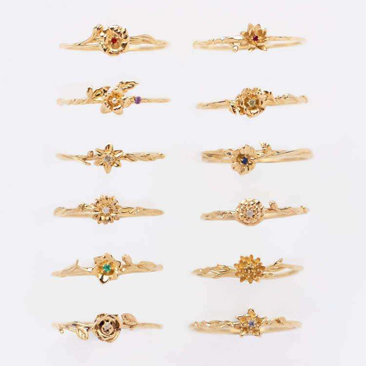 Anillo Ajustable con 12 Piedras de Nacimiento en Latón Chapado en Oro, Estilo Moderno y Delicado con Cobre y Circonita para Bodas y Regalos