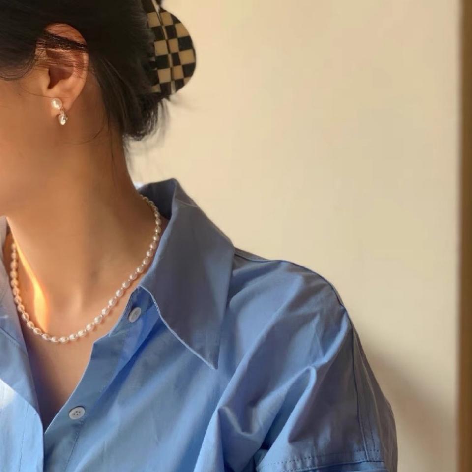 Collar Ajustable de Cuentas de Oro de 14k con Perla Natural de Agua Dulce, Estilo Retro y Delicado para Blogueros de Instagram