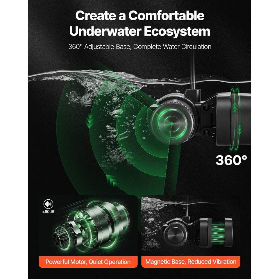 Bomba de flujo cruzado ajustable de 15W 1428 GPH con controlador para agregar ondas naturales de Acuario y corrientes de agua
