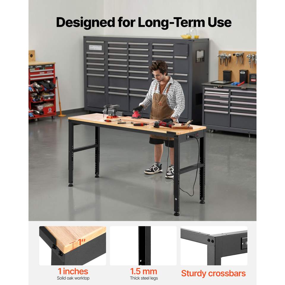 Banco de Trabajo Ajustable de Alta Resistencia con Capacidad para 2000 Libras, 61 x 20 Pulgadas, Altura Ajustable de 27.1 a 36 Pulgadas, Muebles de Oficina