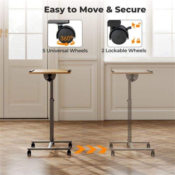 Carrito de Escritorio Ajustable para Portátil de 24.5 a 36 Pulgadas con Ruedas Bloqueables y Ángulo de Inclinación Ajustable, Estación de Trabajo Móvil con Acabado Natural