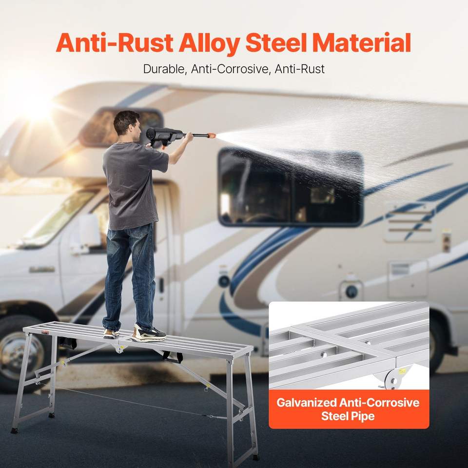 Plataforma de Trabajo Ajustable de 4 Niveles, Portátil, Capacidad de Carga de 800 lb, Escalera Plegable de Acero Aleado para Andamios