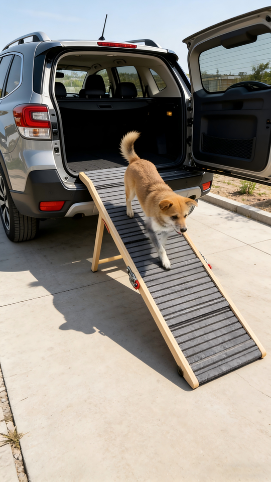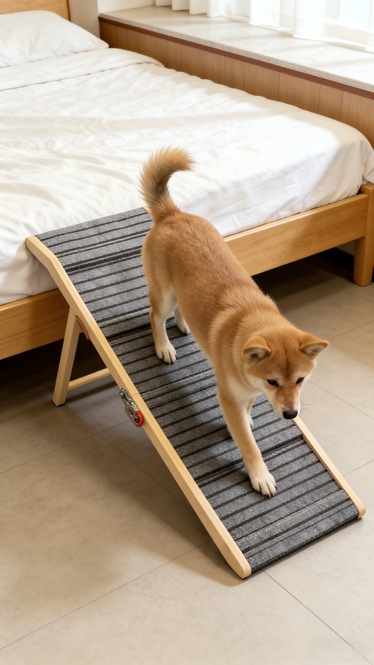 Escaleras Plegables para Perros de Bambú, Ajustables en 5 Alturas, Diseño Plegable, para Uso en Hoteles y Exteriores