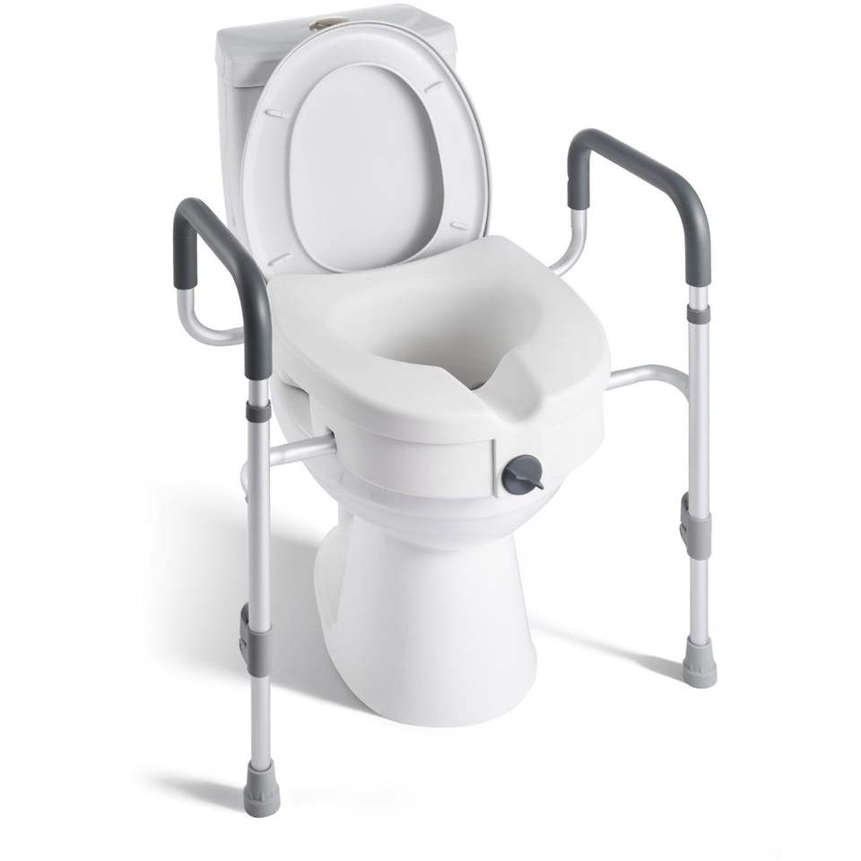 Asiento de Inodoro Elevado Ajustable con Altura de Elevación de 5 Pulgadas y Capacidad de 350 Libras, con Brazos Más Anchos para Equipo de Seguridad en el Baño