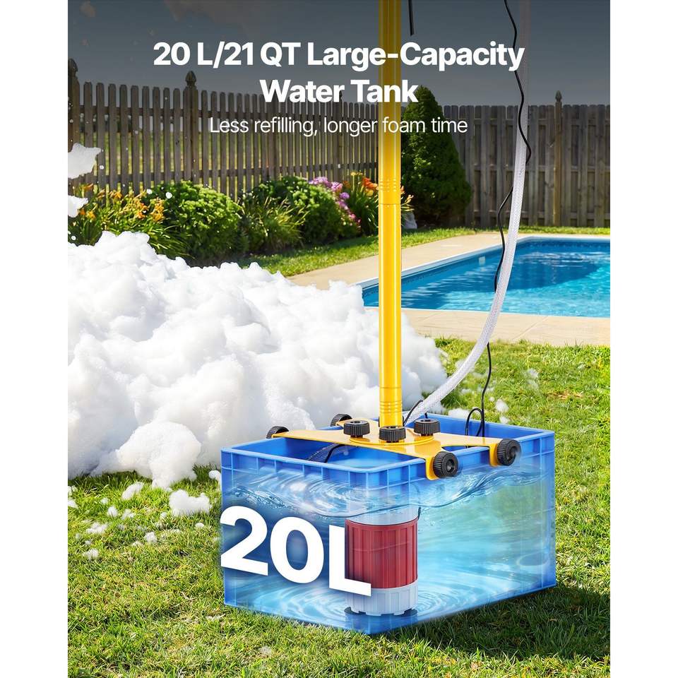 Máquina de Burbujas para Fiestas con Cañón de Espuma, Diseño Vertical Estable, Tanque de Agua de 21QT y Control de Ángulo Ajustable