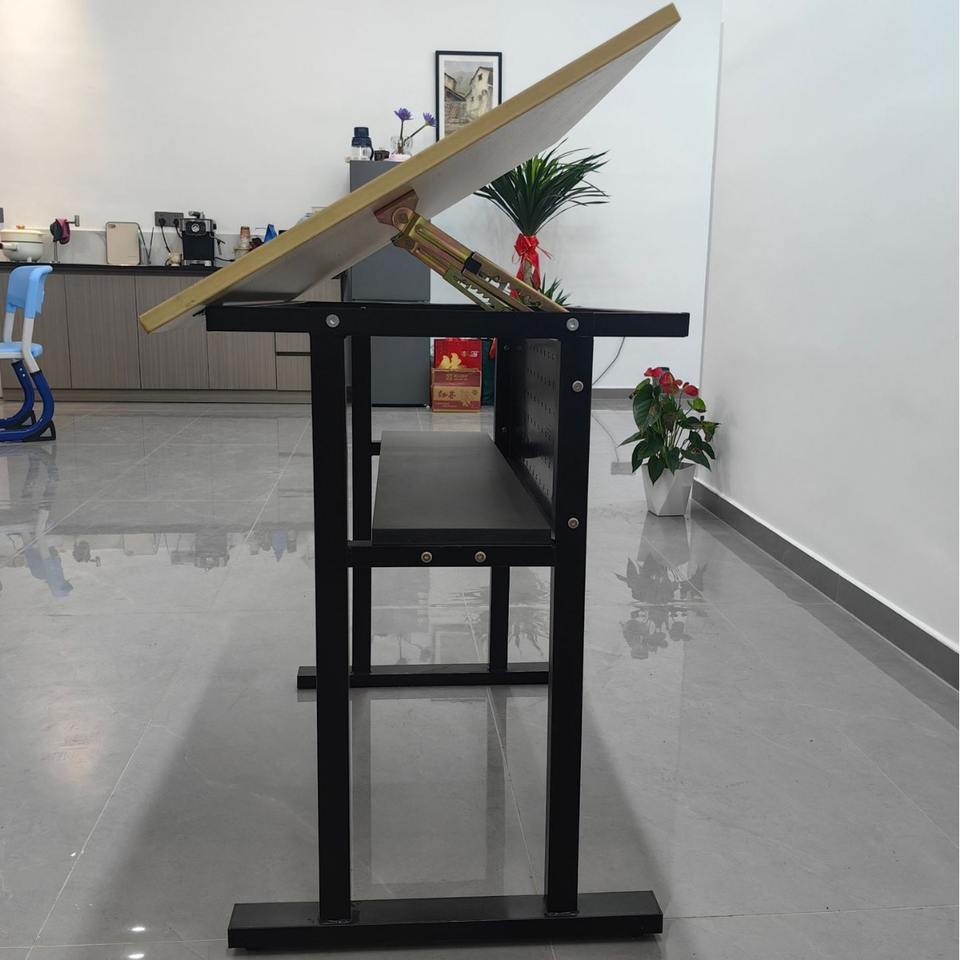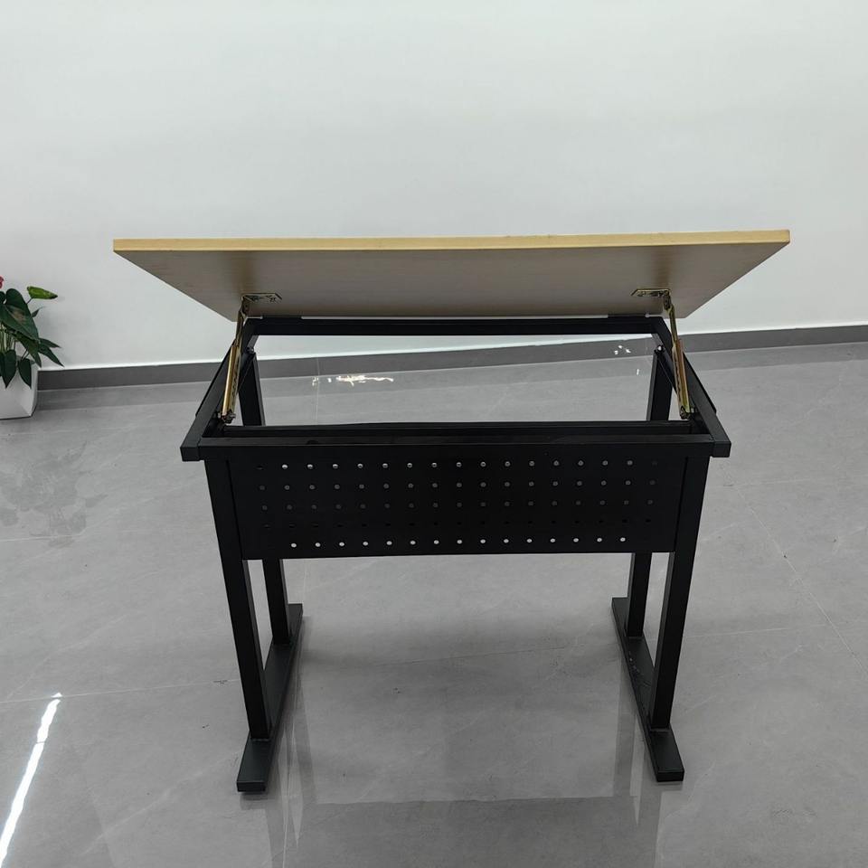 Tablero de dibujo con ángulo ajustable, 90x60x77 cm, marco de metal de color madera natural para diseño CAD