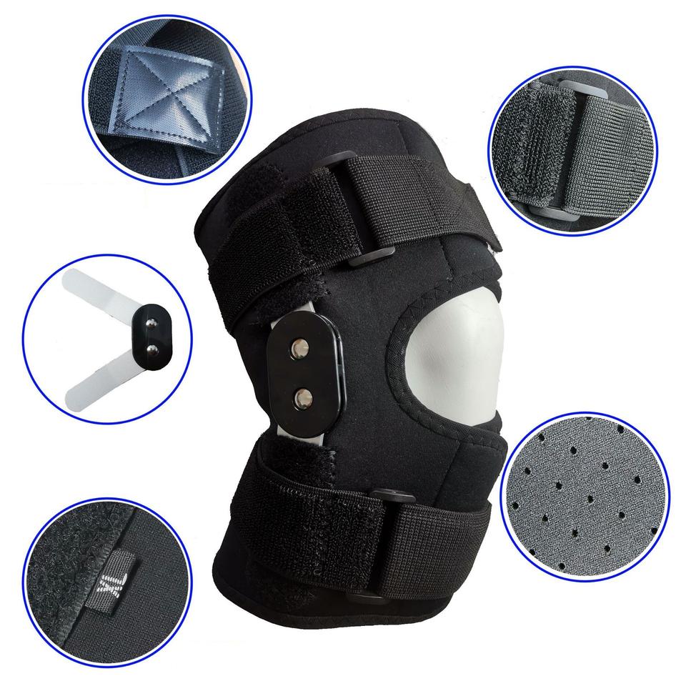 Soporte de rodilla con Bisagras de metal de fijación de articulación de recuperación médica anticolisión ajustable almohadillas de rótula con bisagras