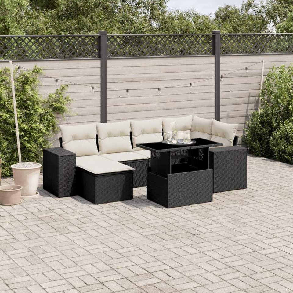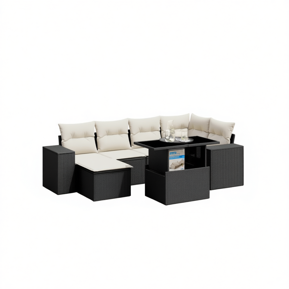 Conjunto de Sofá de Jardín con Reposabrazos Ajustables en Ratán Sintético Negro, Muebles de Exterior de 6 Plazas, Diseño Contemporáneo