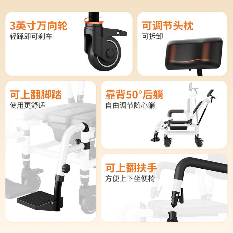 Silla de baño ajustable con ruedas para ancianos y discapacitados, capacidad de 200 kg, uso doméstico