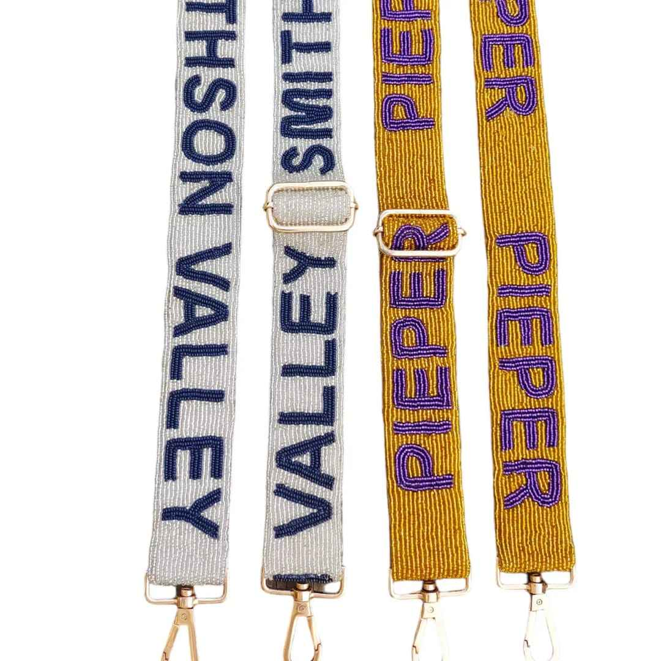Correa Ajustable para Bolso con Cuentas Bordadas, Modelo Smithson Valley Pieper, Letra Plateada y Dorada, Correa Ancha para Hombro, Asa para Bolso Cruzado