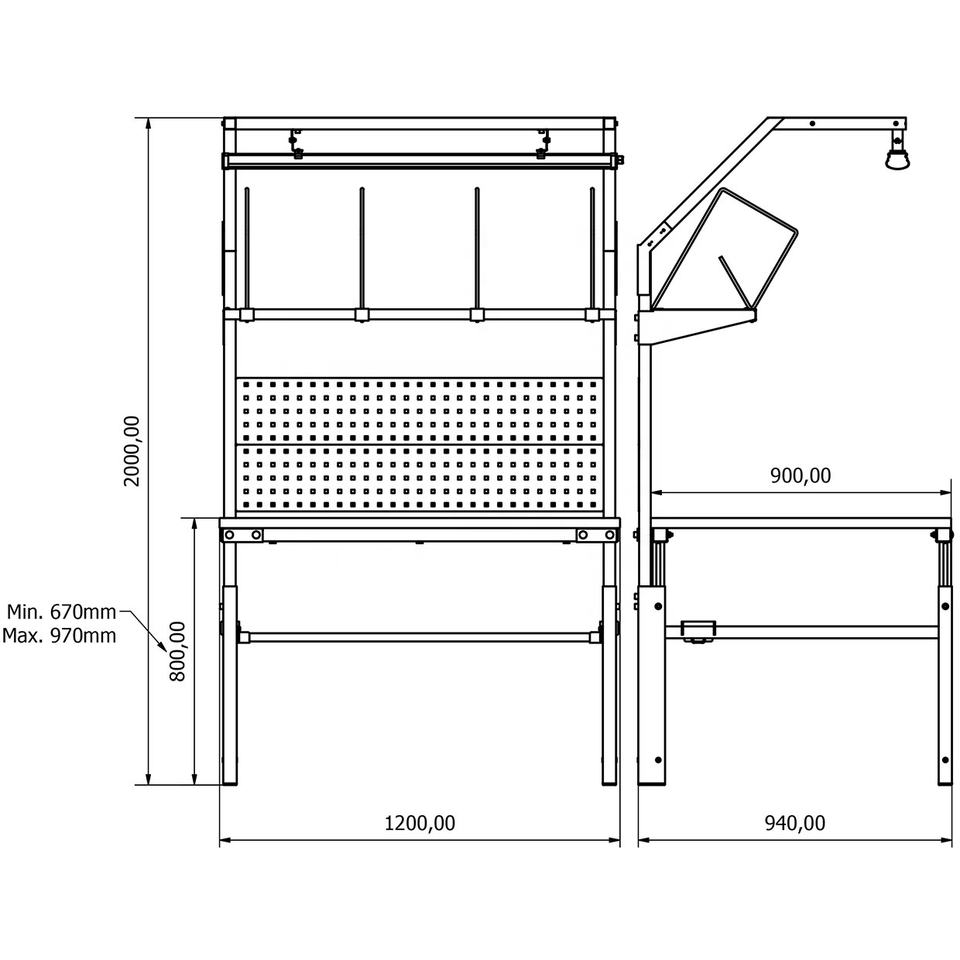 Banco de trabajo de acero laminado en frío ajustable con tablero de MDF para uso en almacén de carpintería y comercio electrónico, marca Bodur