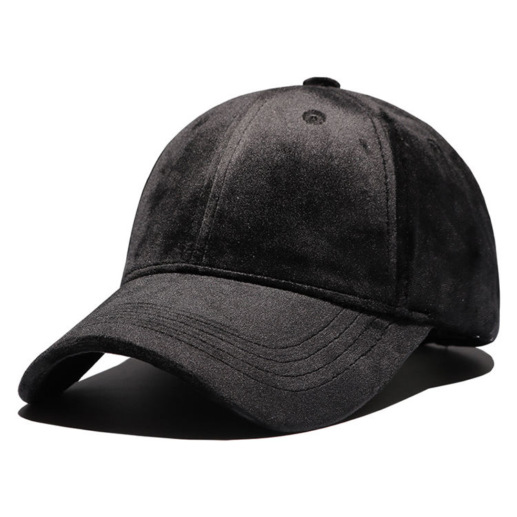 Gorras de Béisbol de Terciopelo Negro Lisas con Correa Trasera Ajustable y Hebilla Metálica Personalizada, Sin Logotipo
