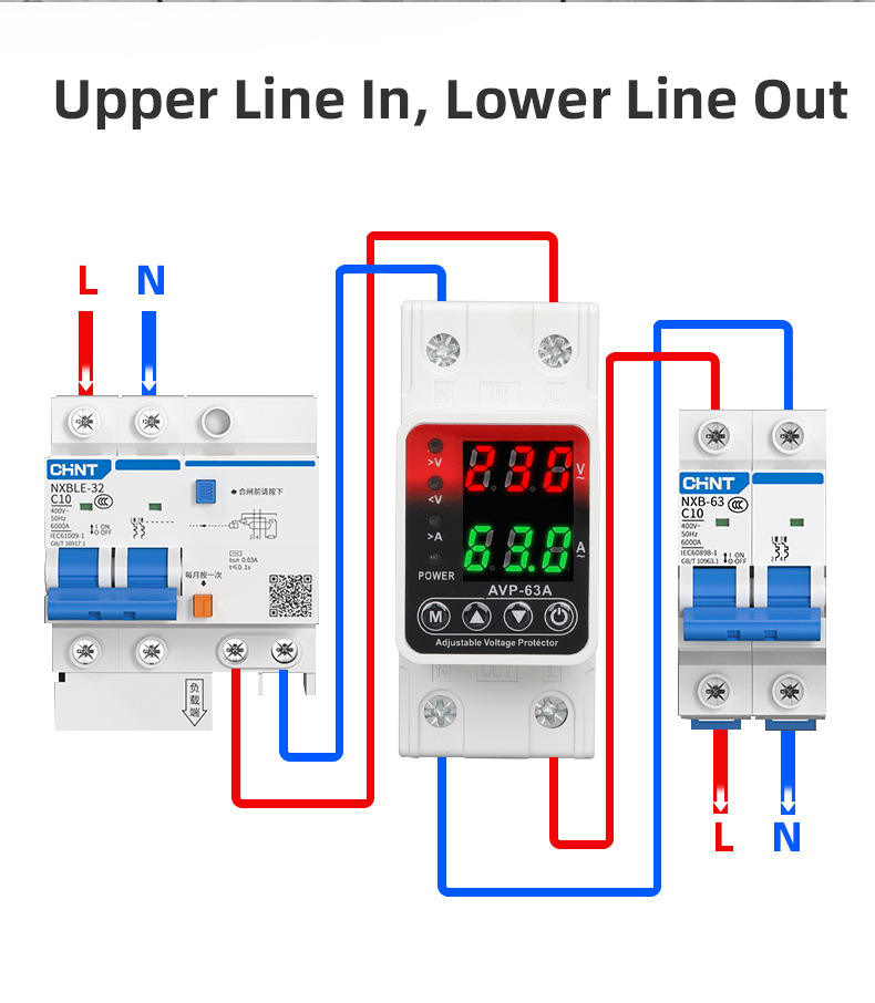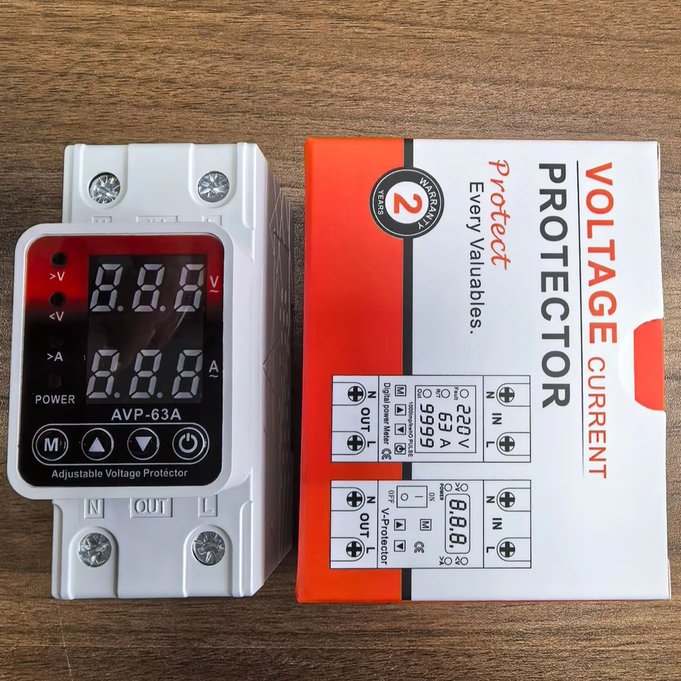 Protector de voltaje ajustable Digital Ac Dc sobre y bajo corriente monofásico 2P 40A 63A 80A 100A 220V 110V pantalla dual AVP