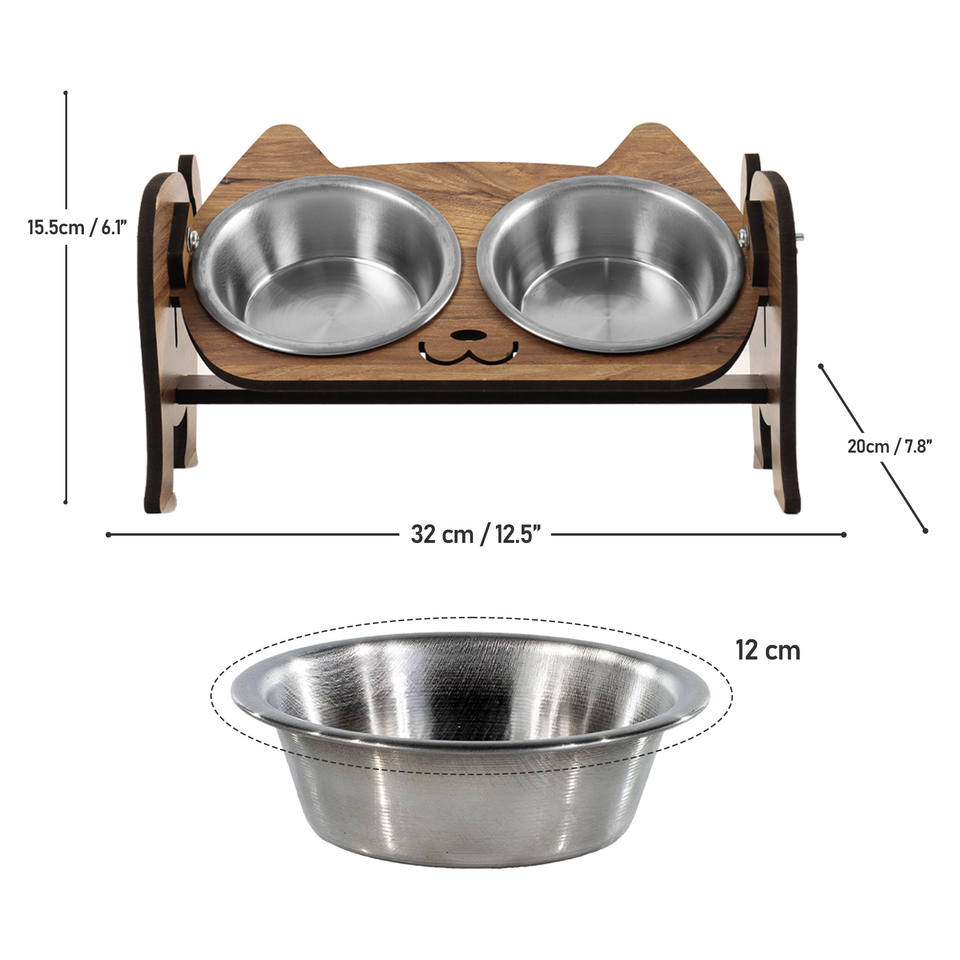 Comedero Doble Ajustable para Gatos con Tazones de Cerámica, Tazones y Comederos para Mascotas, Soporte Ergonómico Elevado de Madera para Comida de Mascotas OEM ODM