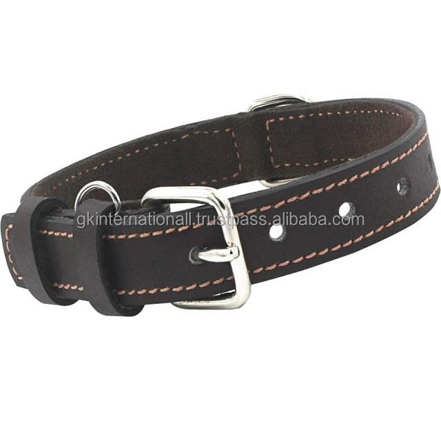 Collar de perro de cuero duradero y fuerte de doble costura ajustable con hebilla de acero inoxidable y doble guardián en todos los tamaños personalizados
