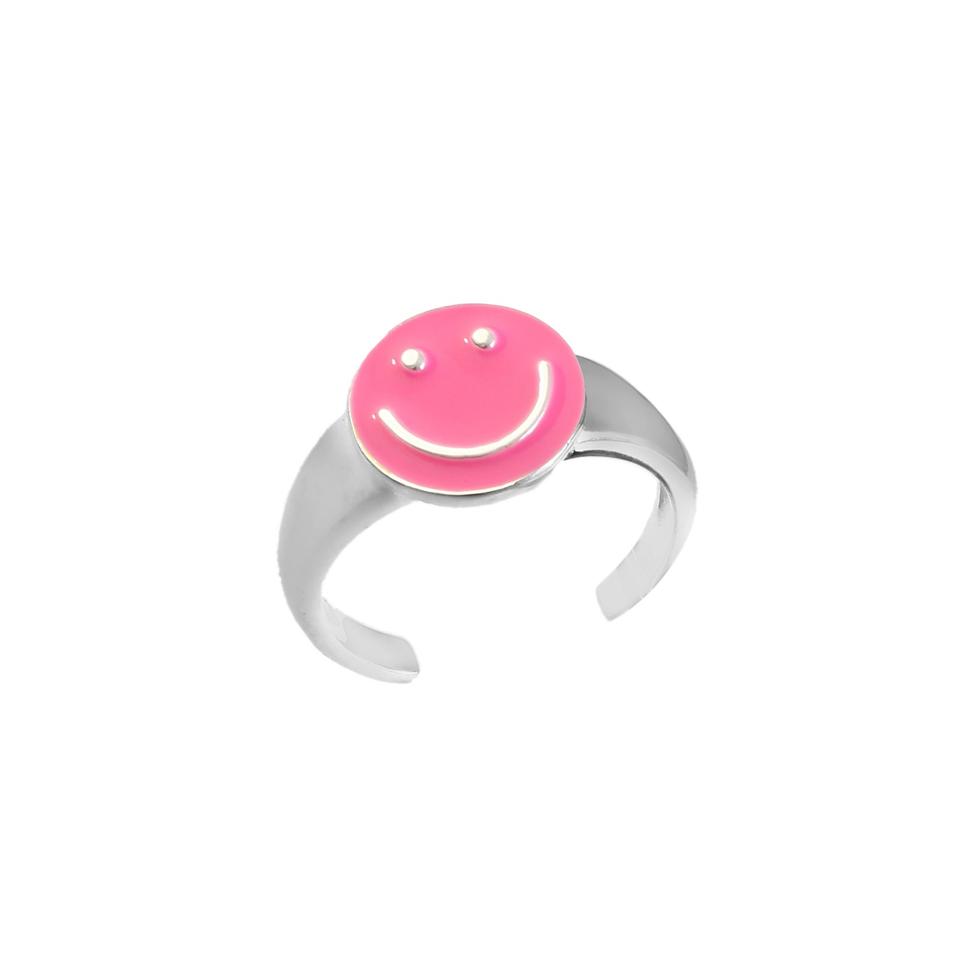 Anillo de cara sonriente de esmalte ajustable en Plata de Ley 925 Eternidad Vermeil Boho Regalo de aniversario de cumpleaños Regalo perfecto para ella