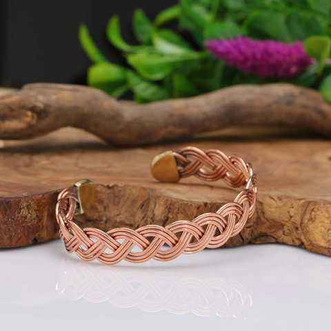 Brazalete Ajustable de Cobre Sólido Estilo Bohemio Étnico, Joyería Hecha a Mano de Primera Calidad con Cordón y Diseño Abierto