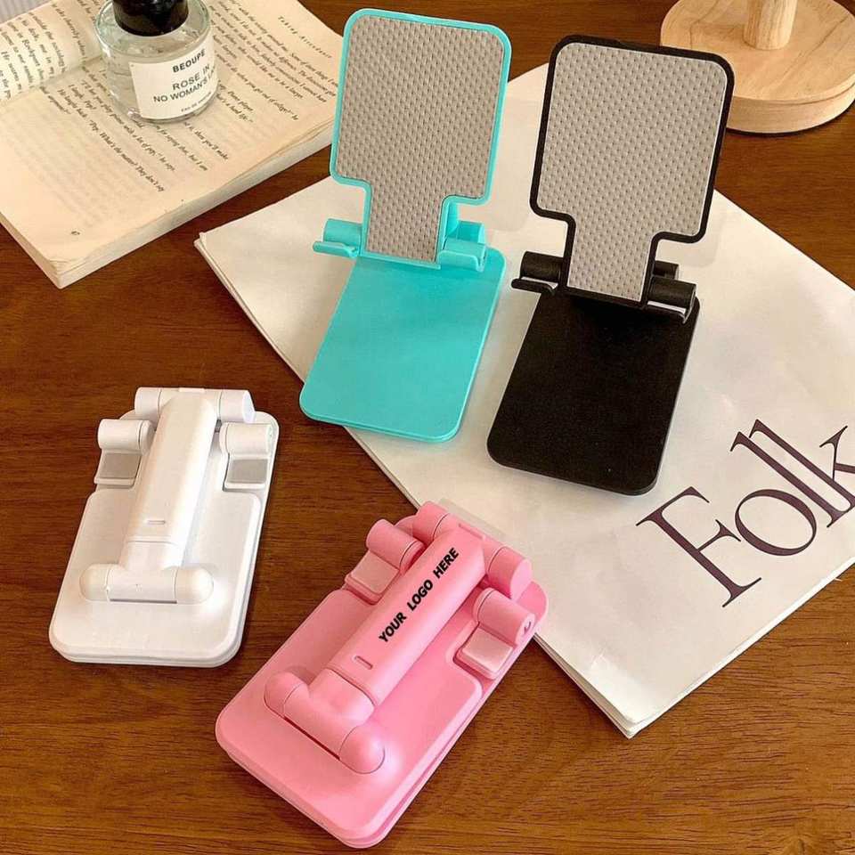 Soporte Plegable Ajustable para Teléfono de Plástico, con Logotipo Personalizado Impreso en Serigrafía, Soporte Portátil de Escritorio para Tablets, Regalo Promocional Empresarial